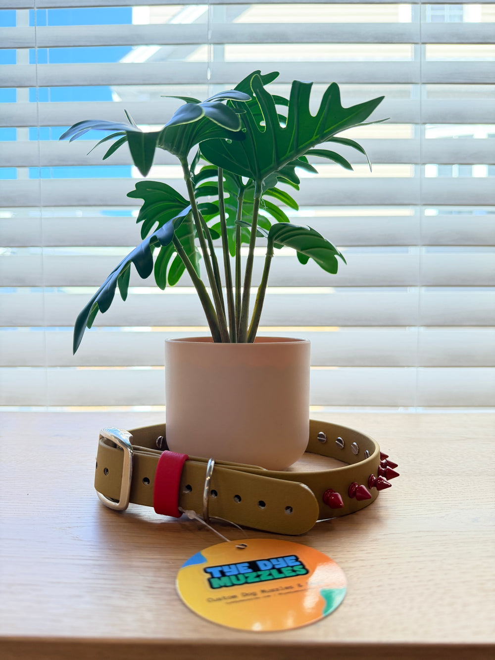 Gold Biothane Spike Collar – Red Spikes – 1 Inch – Adjustable 16–20”