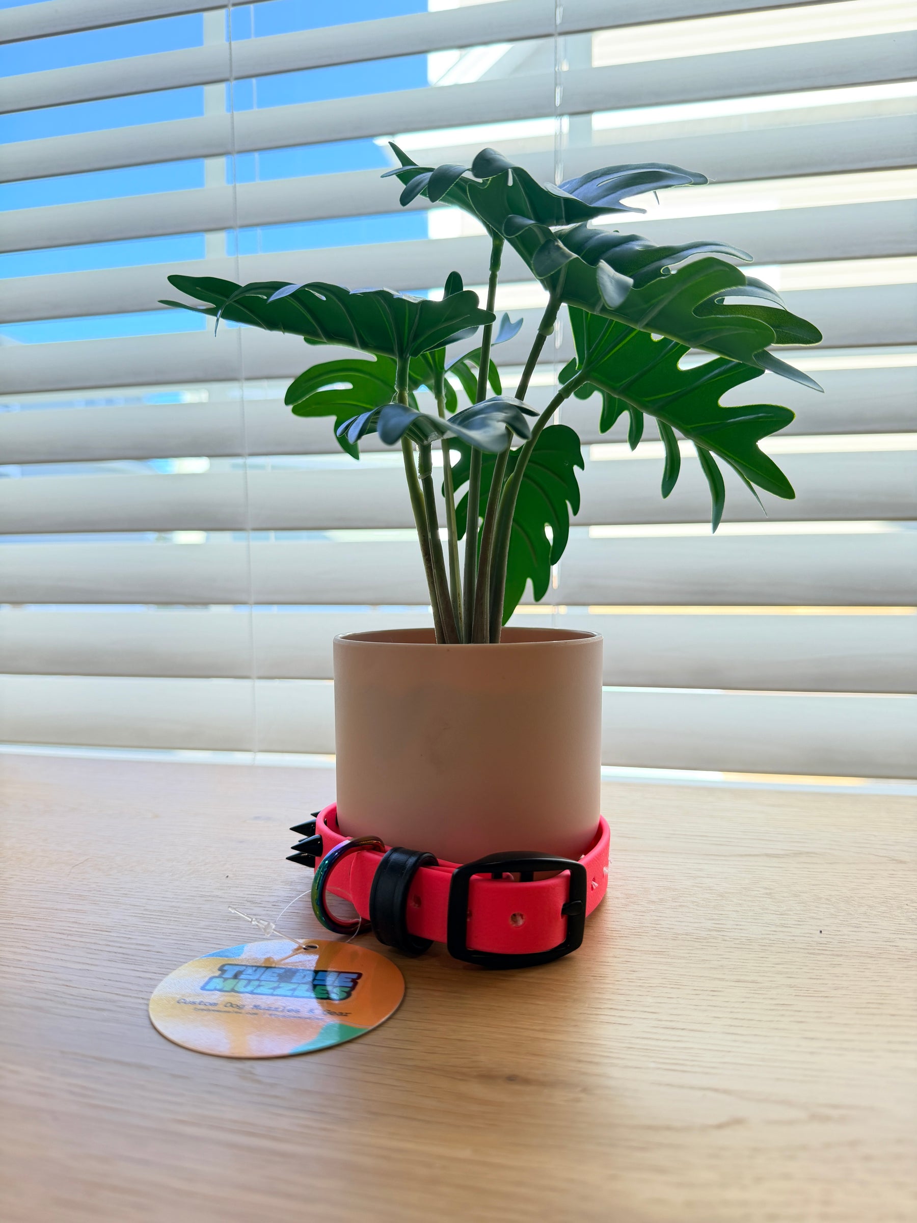 This 3/4-inch Pink Biothane collar features bold red spikes for a stylish, durable, and waterproof design. Soft, flexible, and easy to clean, it’s built for everyday comfort while making a statement.