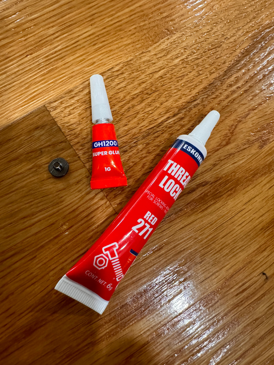 All you need to do is put a tiny bit on eaither end of the screw and secure the screw into place.