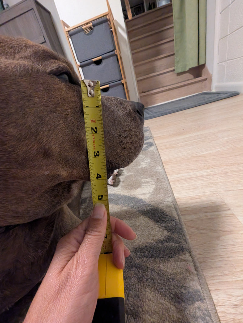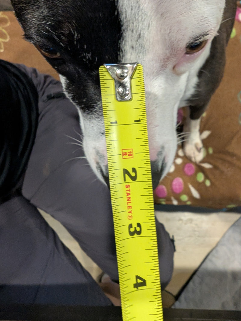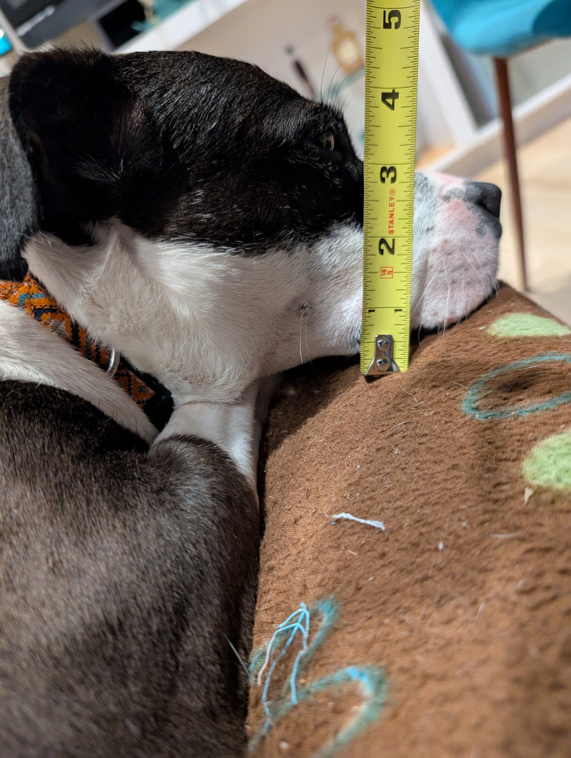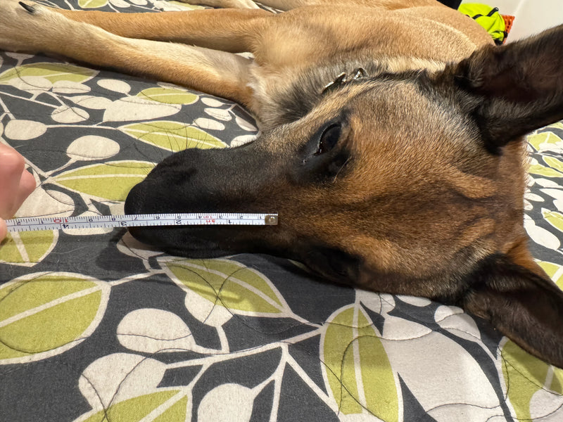 Below you'll find detailed measurements for each pup! We've included photos of the dog, their measurement process (when available), and the final measurements to help you find the perfect fit for your furry friend. 🐶